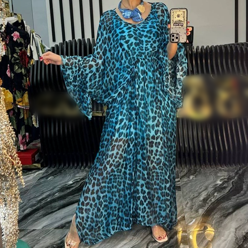 💞✨Jesienne nowości – 49% zniżki🔥Długa, zwiewna sukienka z dekoltem w serek i nadrukiem w panterkę
