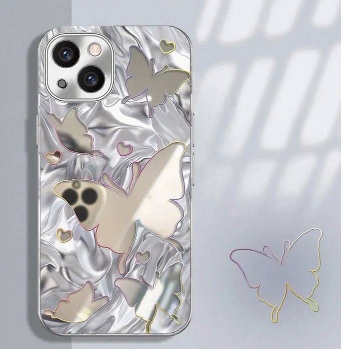 Etui z łańcuszkiem z koralikami i motylem lustrzanym na iPhone'a