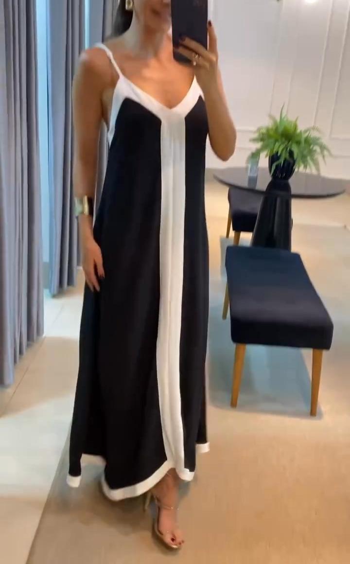 Sukienka damska z długim rękawem i kontrastowym dekoltem w serek